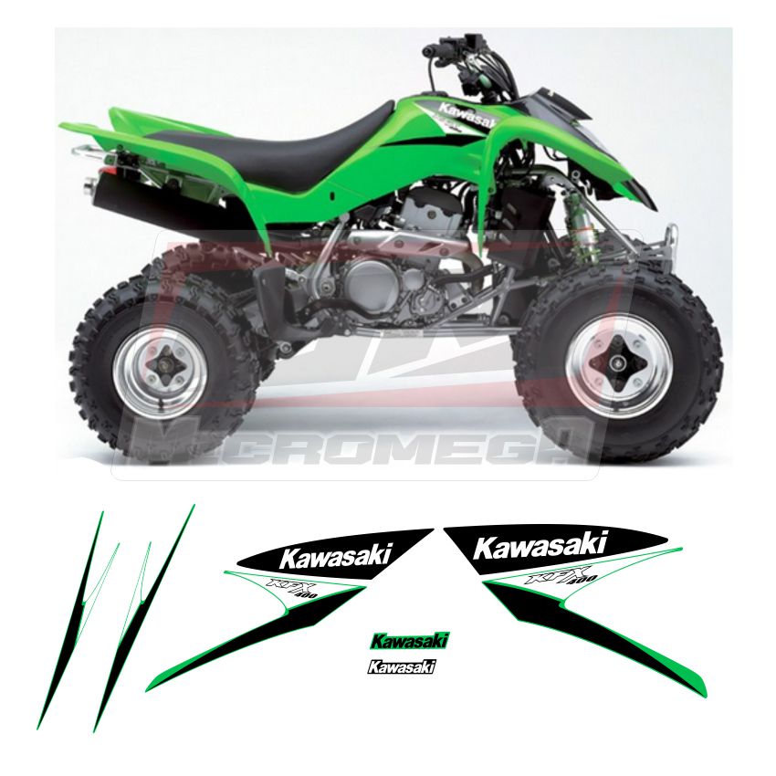 El diseño de las calcomanías Kawasaki Kfx 400 2006 es fresco con una combinación de colores muy estilizado, nosotros cuidamos que estos detalles permanezcan lo mas fieles posible a los originales lo que nos ayuda garantizar que los trabajos son de calidad.