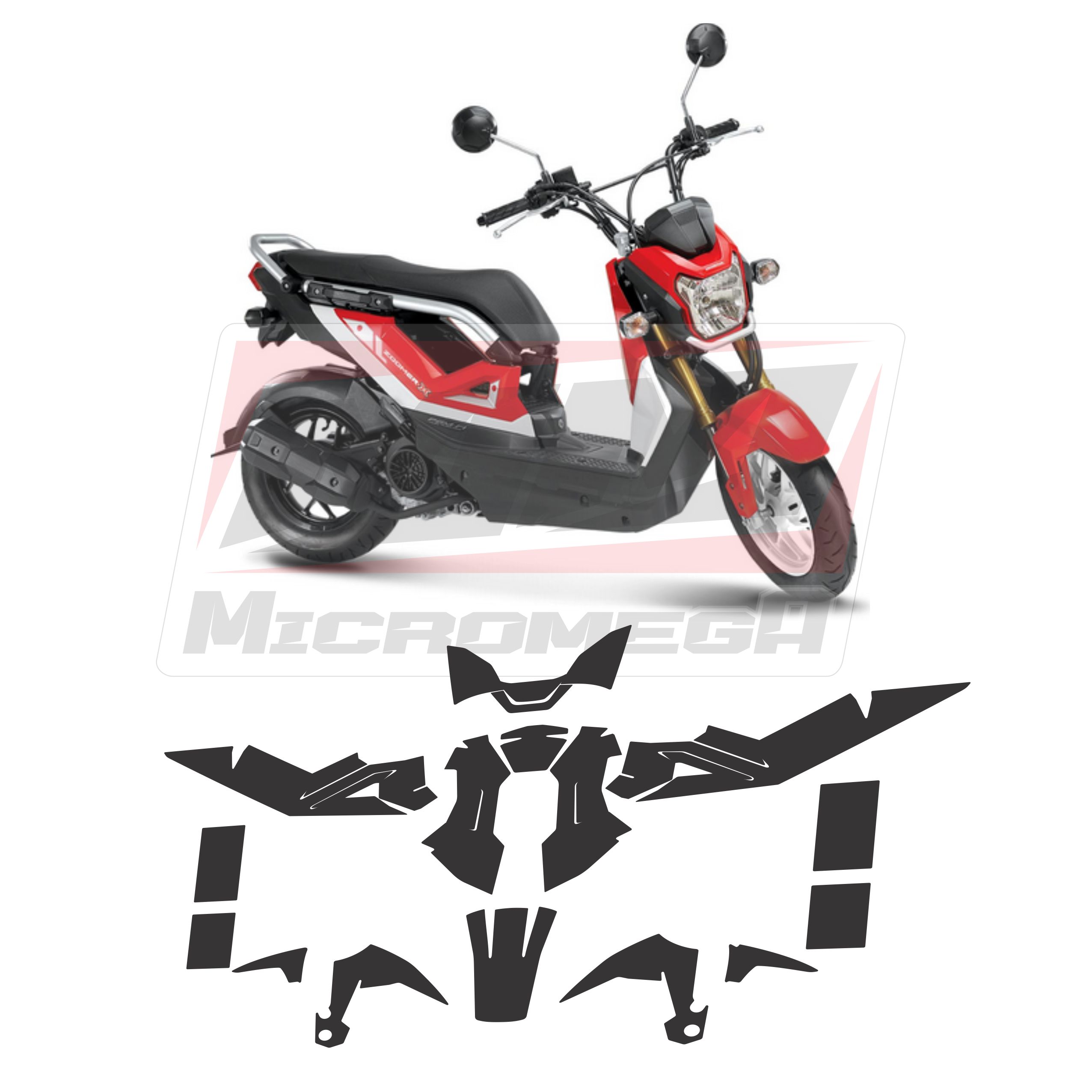 kit de Plantilla Vectorizada Honda Zoomer a escala real, contiene las partes esenciales para diseñar tus gráficos personalizados muy fácil. Disponibles en formato .epc o .cdr